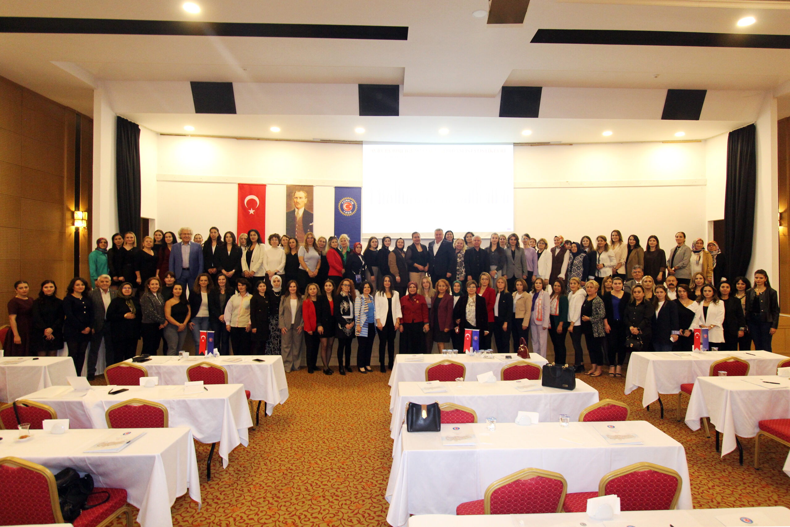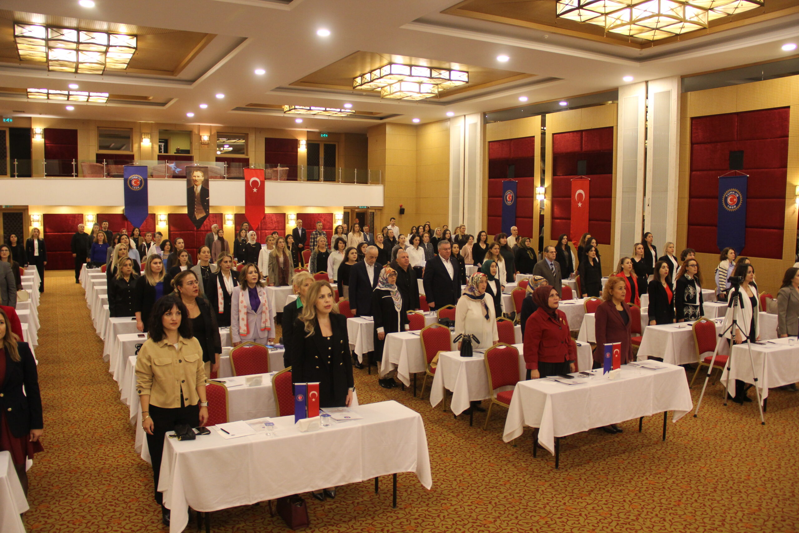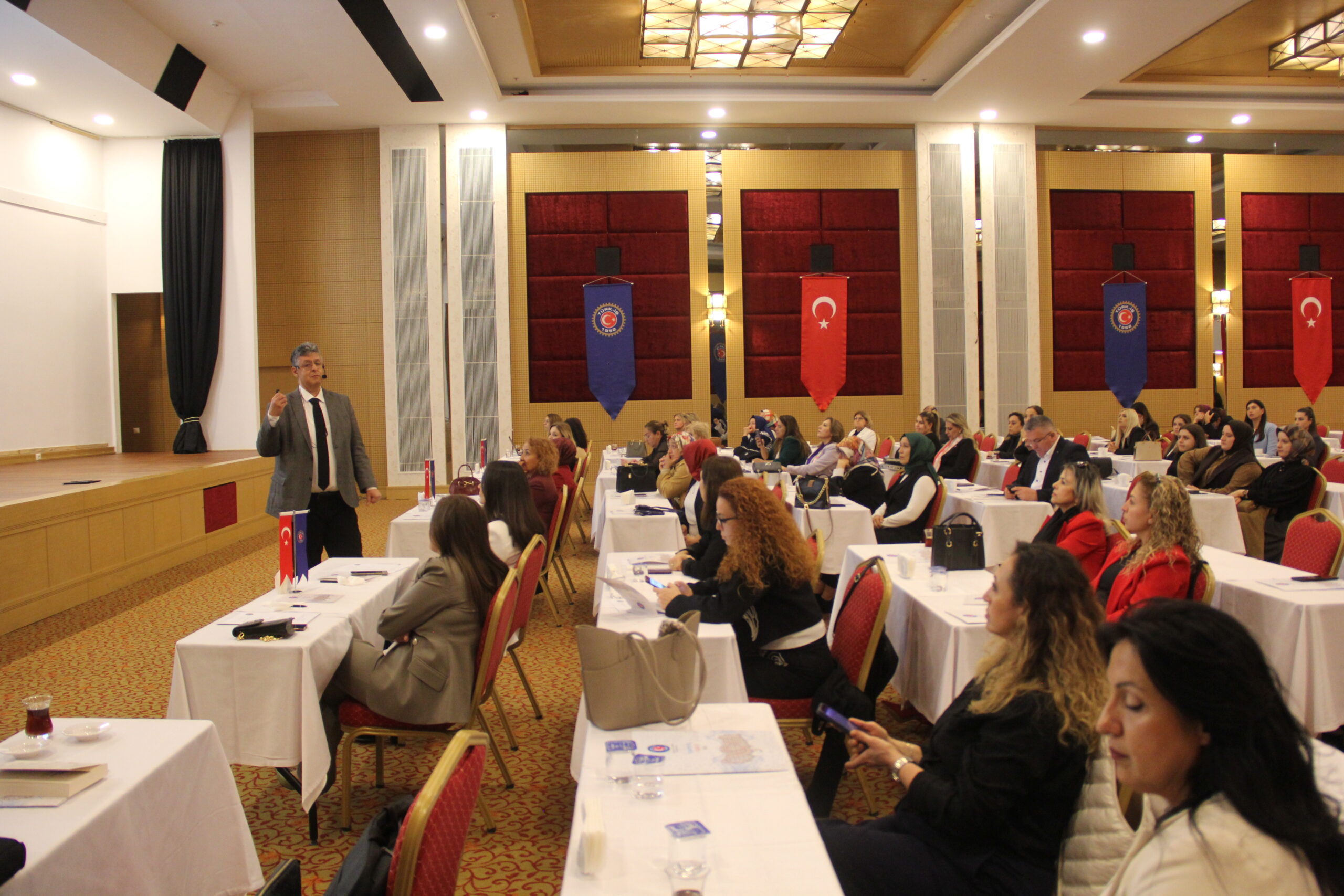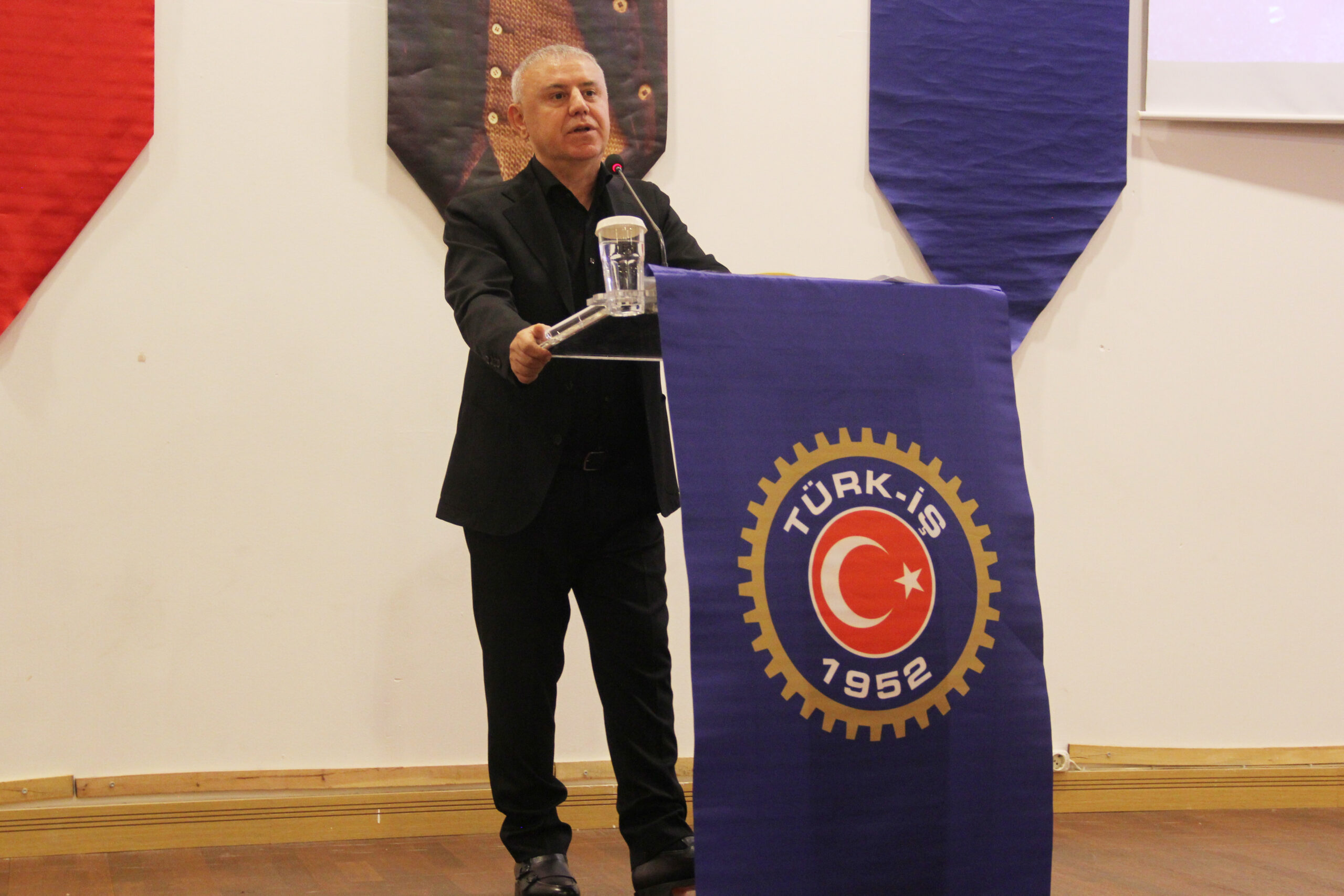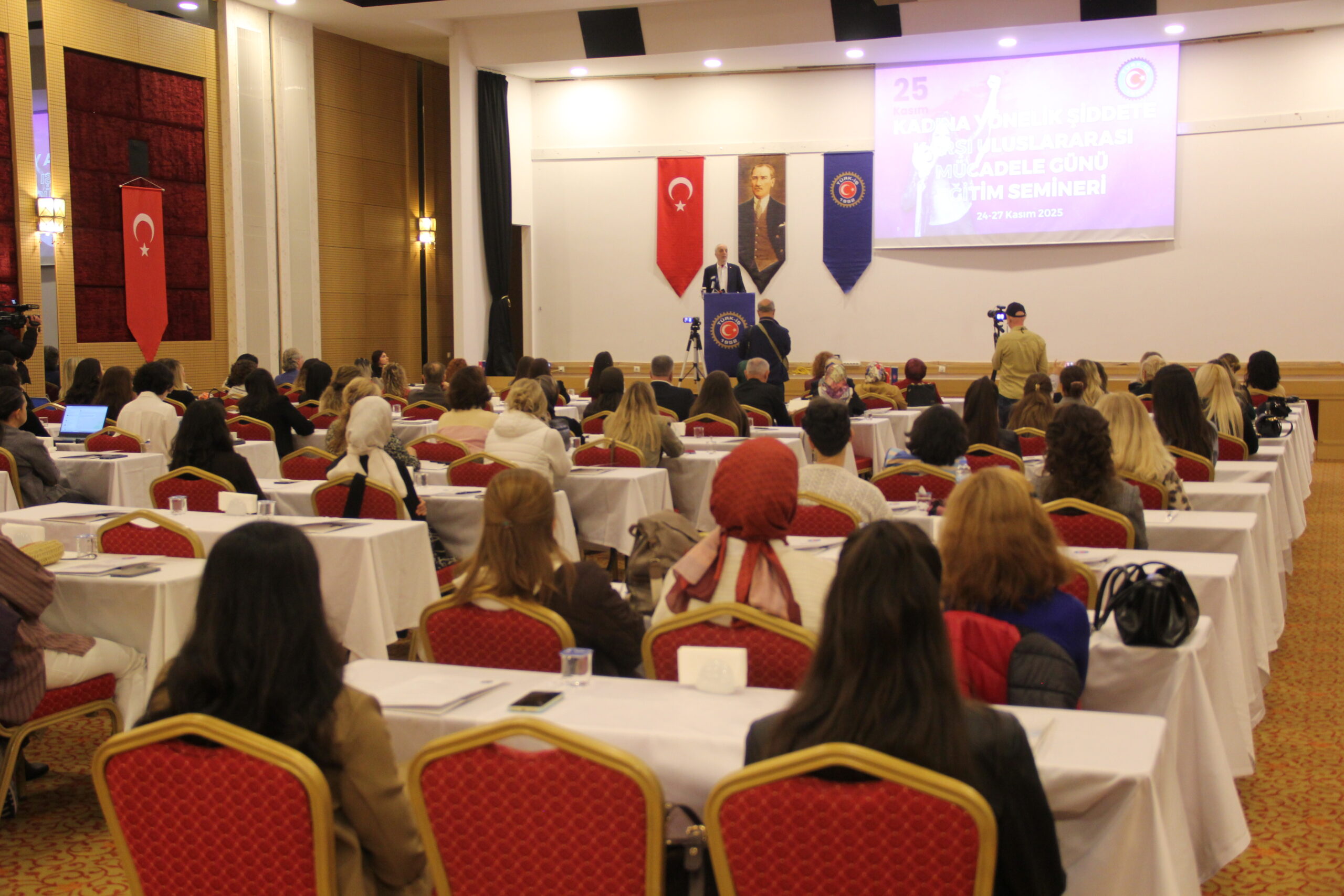 TÜRK-İŞ tarafından “25 Kasım Kadına Yönelik Şiddete Karşı Uluslararası Mücadele Günü” kapsamında gerçekleştirilen eğitim seminerine; TÜRK-İŞ Genel Başkanı Ergün ATALAY, TÜRK-İŞ Genel Başkan Yardımcıları Eyüp ALEMDAR ve İrfan KABALOĞLU ile TÜRK-İŞ’e bağlı sendikaların kadın yönetici ve uzmanları katıldı.