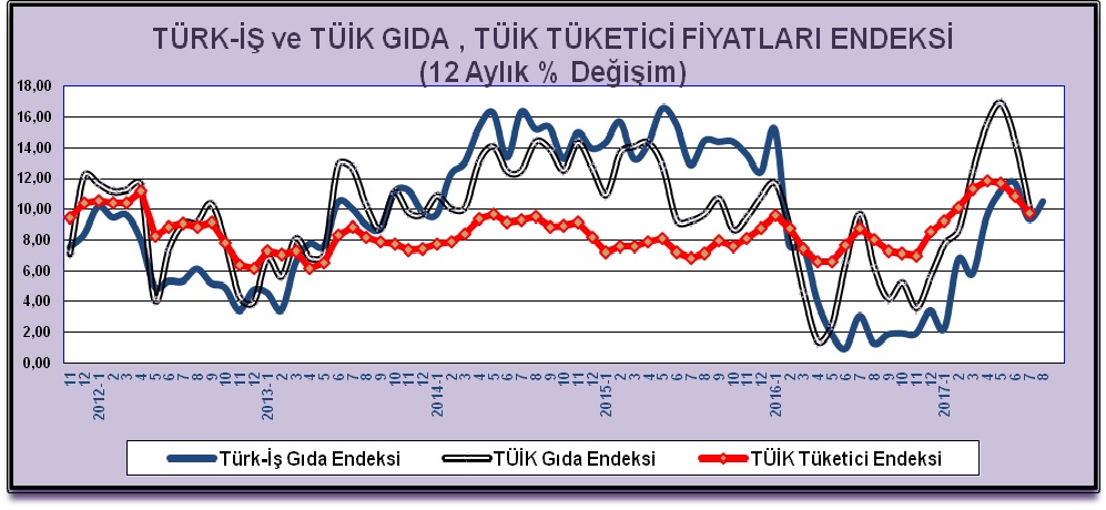TÜRK-İŞ’in verileri temel alındığında “mutfak enflasyonu”ndaki değişim 2017 Ağustos ayında şu şekilde gerçekleşti: