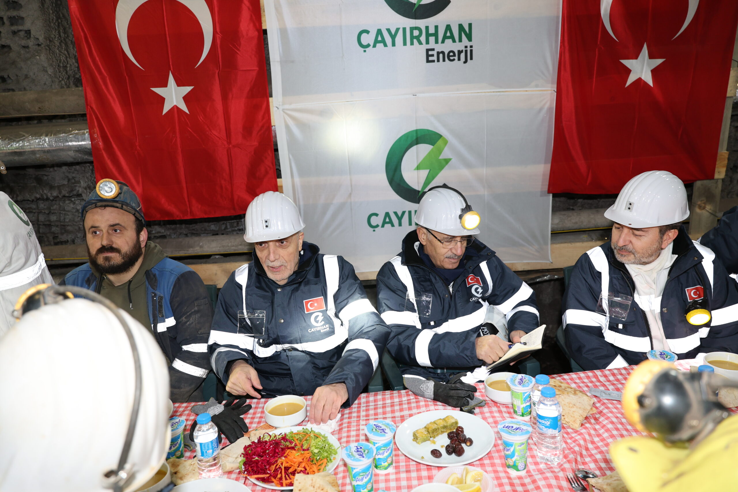 Genel Başkan Ergün Atalay, Ankara’nın Nallıhan ilçesindeki Çayırhan Maden Ocağı’nda madencilerle birlikte yerin yaklaşık 300 metre altında iftar yaptı.