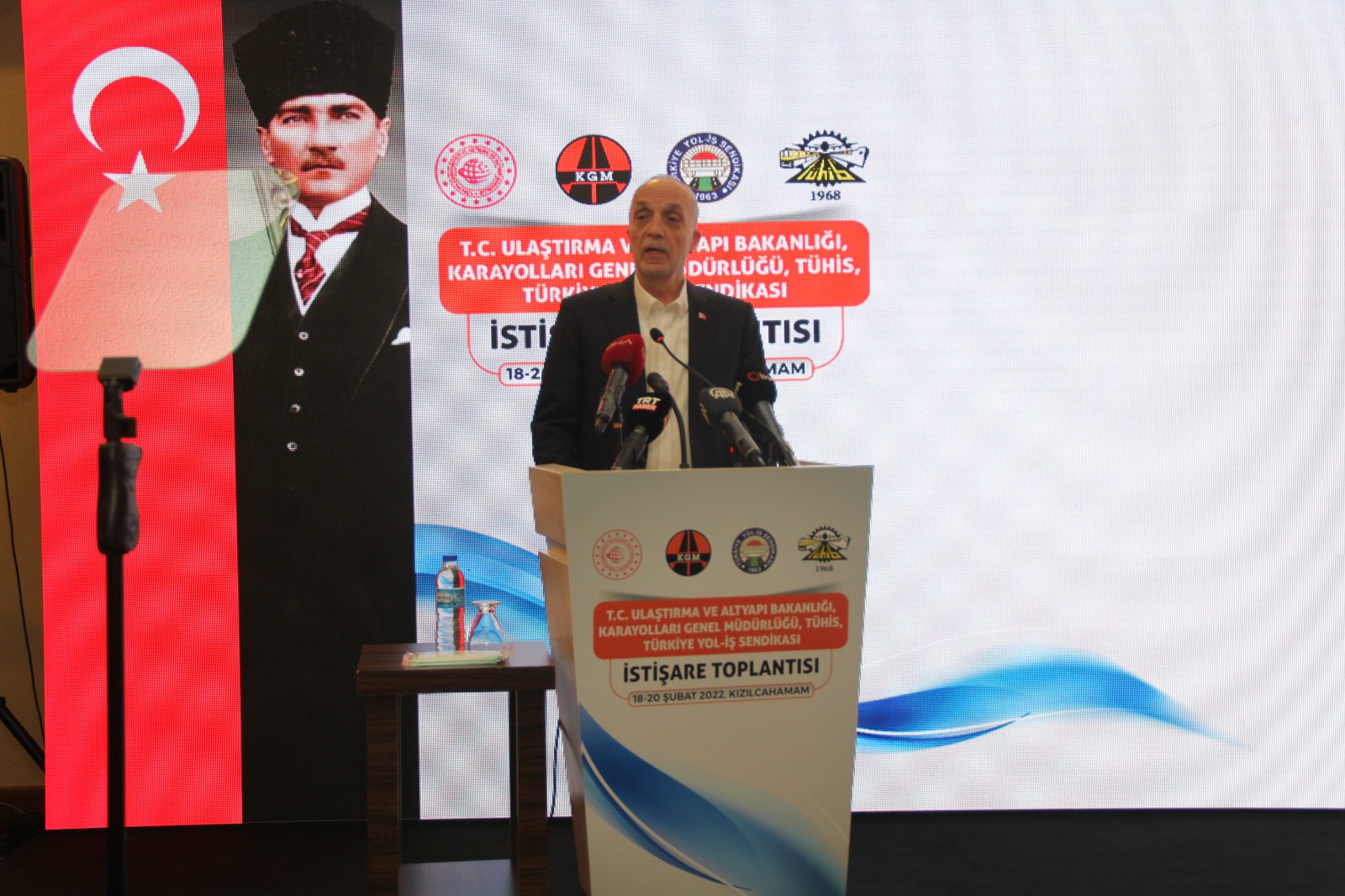 İstişare Toplantısı’na Ulaştırma ve Altyapı Bakanı Adil KARAİSMAİLOĞLU, KGM Genel Müdürü Abdulkadir URALOĞLU, TÜRK-İŞ Genel Mali Sekreteri Ramazan AĞAR, TÜHİS Genel Sekreteri Adnan ÇİÇEK katıldı.