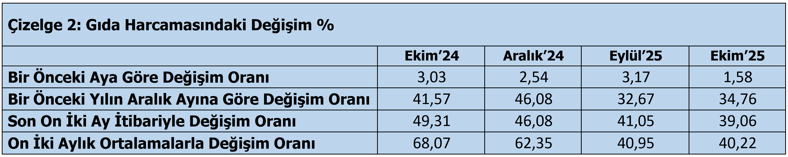 TÜRK-İŞ’ in verilerine göre “mutfak enflasyonu” verilerindeki değişim Ekim 2025 itibariyle şu şekilde gerçekleşmiştir: