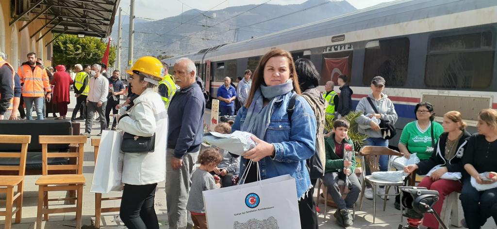TÜRK-İŞ Kadın Heyeti’nin deprem bölgesindeki 8 Mart etkinliklerini takip eden Genel Başkan ATALAY ile Bakan BİLGİN, İskenderun Garı’nda misafir edilen depremzede kadınlarla 8 Mart Dünya Emekçi Kadınlar Günü dolayısıyla bir araya gelerek afetzedelerin ihtiyaç ve taleplerini dinledi.