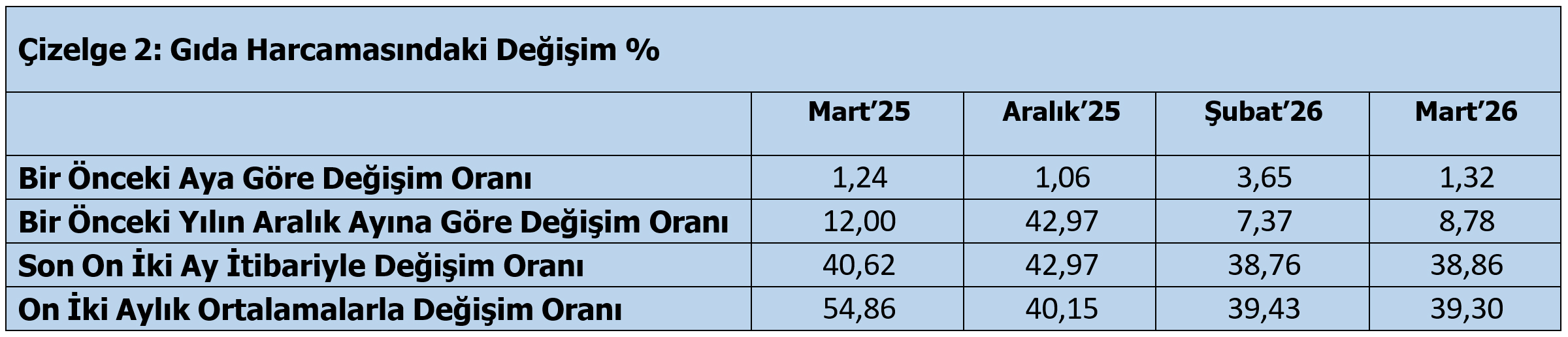 TÜRK-İŞ’ e göre “mutfak enflasyonu” verilerindeki değişim Mart 2026 itibariyle şu şekilde gerçekleşmiştir: