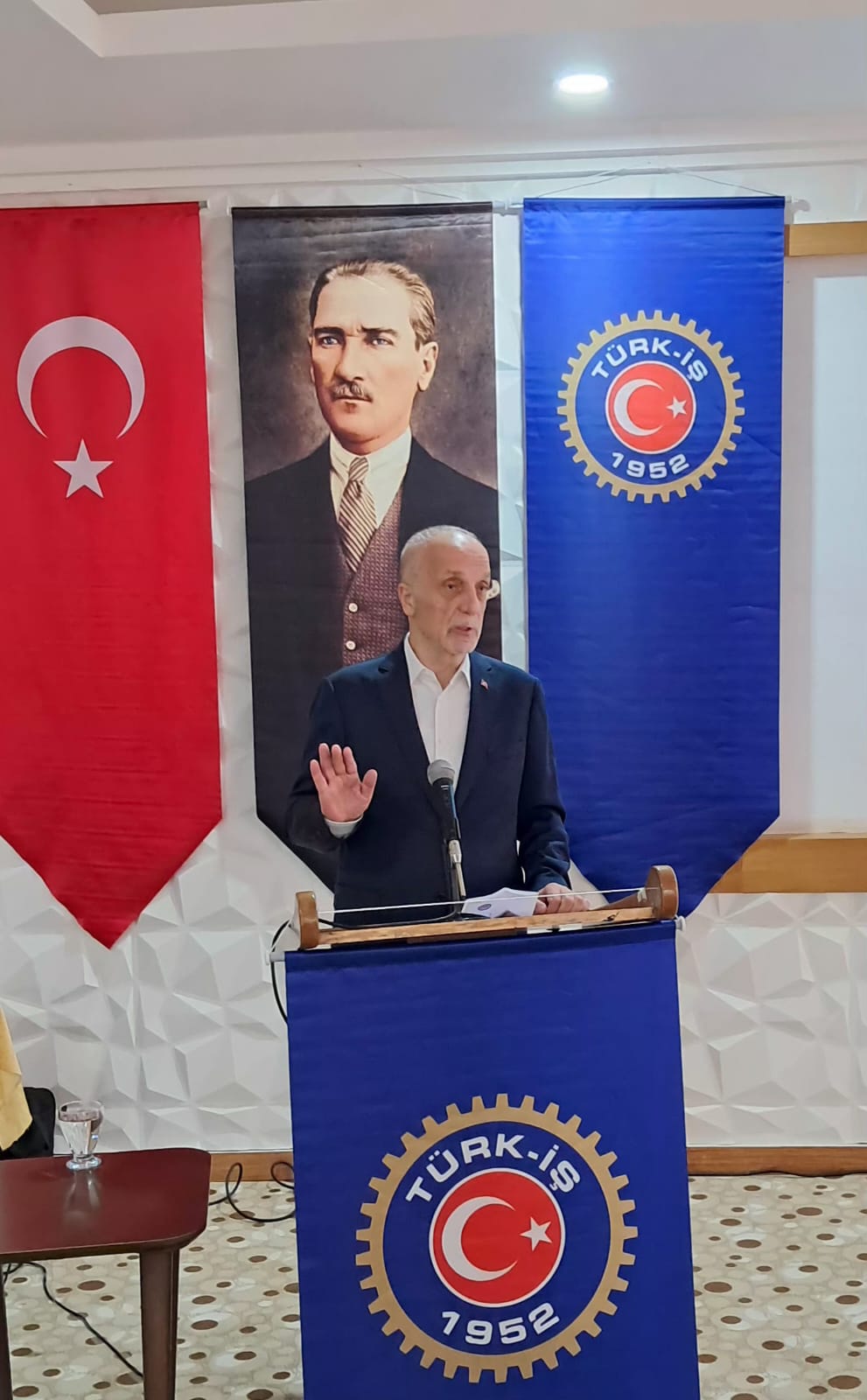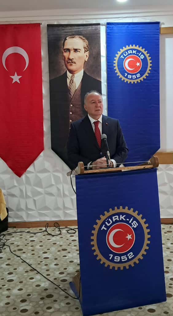 Seminerin açılışını yapan TÜRK-İŞ Genel Başkan Yardımcısı Ramazan AĞAR, konuşmalarını yapmak üzere TÜRK-İŞ Genel Başkanı Ergün ATALAY’ı kürsüye davet etti. ATALAY konuşmasında; kıdem tazminatı, kamu toplu sözleşmeleri, asgari ücret, adaletsiz vergi sistemi, hayat pahalılığı, işsizlik, staj mağdurları, kayıt dışı istihdam, taşeron çalışanlar, madenlerde çalışanlar, emeklilik, güvencesiz çalıştırma, yüksek enflasyon gibi çalışma hayatıyla ilgili konulara değindi.